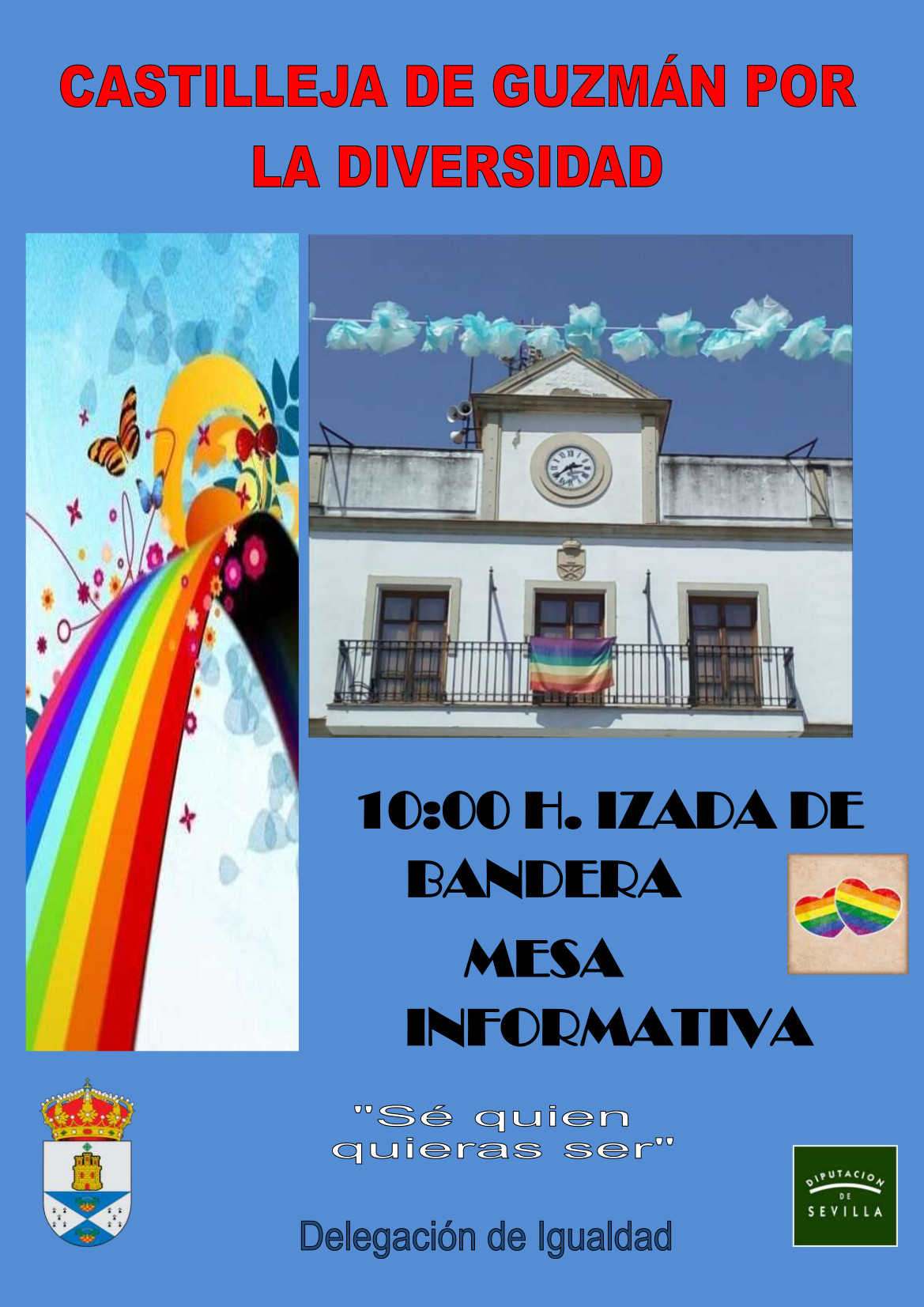 Un año más, el Ayuntamiento de Castilleja de Guzmán quiere mostrar su apoyo a la conmemoración del 28 de junio, Día Internacional del Orgullo LGTBI, a través de un acto donde se izará la bandera multicolor y se colocará una mesa informativa.