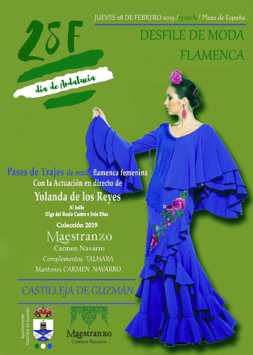 El Ayuntamiento de Castilleja de Guzmán, en colaboración con la firma de moda flamenca MAESTRANZO, organiza con motivo del Día de Andalucía, un desfile de Moda Flamenca en la Plaza de España, el jueves 28 de febrero a partir de las 13:00 horas.