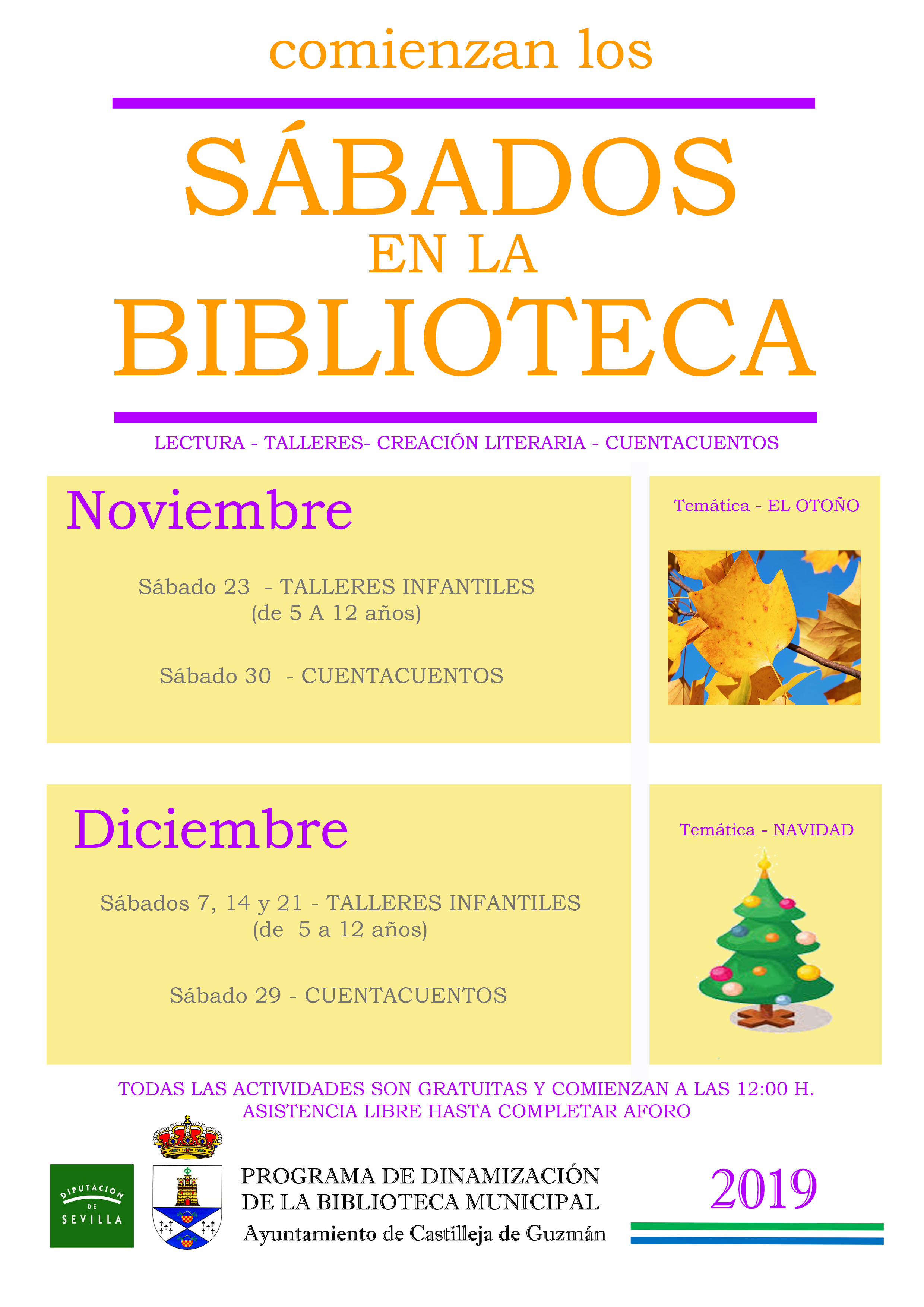 Las actividades son gratuitas y comienzan a las 12 de la mañana, aunque por motivo de aforo, está limitada la asistencia a las mismas hasta completarlo.