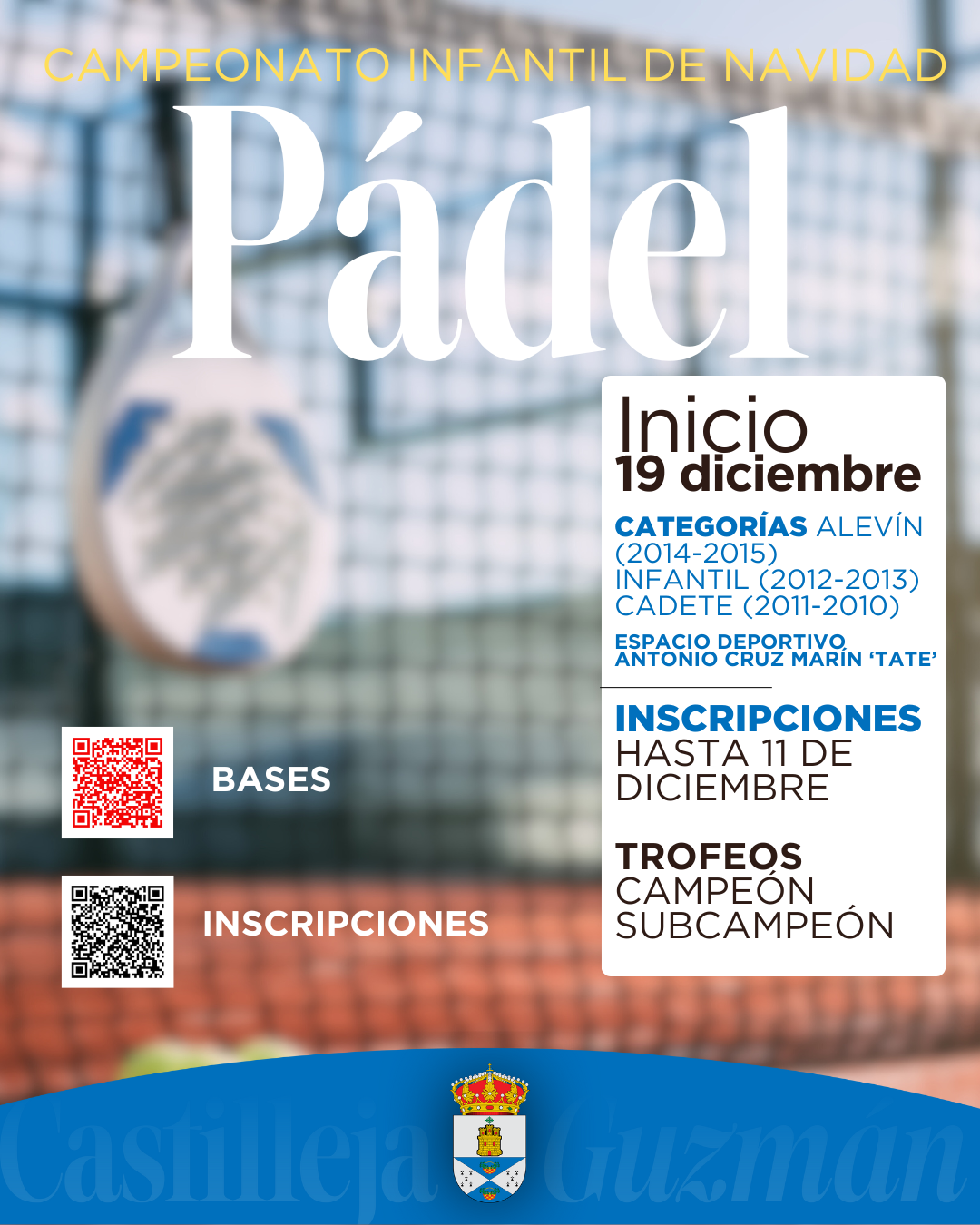 También habrá Torneo infantil de Pádel donde podrán participar parejas de las categorías Alevín, Infantil y Cadete. Para el campeonato de adultos debe haberse cumplido los 16 años de edad